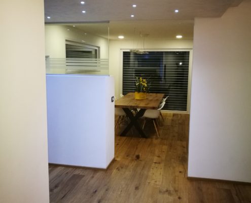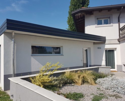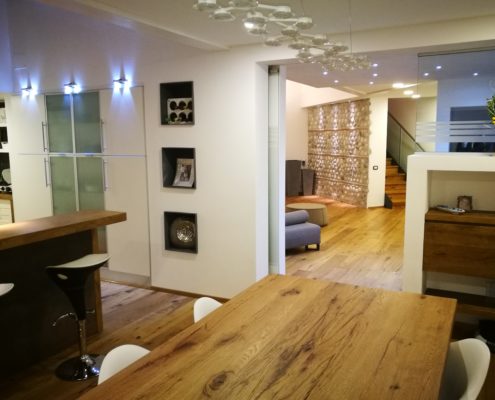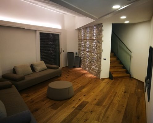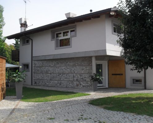 Si tratta di una ristrutturazione edilizia con ampliamento di un edificio esistente. Le strutture esistenti sono in muratura mentre l’ampliamento e in pannelli di Xlam. Le nuove coperture, come le preesistenti, sono in legno a vista. Il nuovo corpo di fabbrica si integra amabilmente con le preesistenze conferendo all’edificio un tono moderno per le nuove porzioni che enfatizzano il design tradizionale dell’edificio storico. Forme e materiali si armonizzano per creare ambienti funzionali e confortevoli. La generazione del calore avviene per mezzo di una caldaia a gas ad alta efficienza per la porzione in muratura mentre per la parte in legno i riscaldamento avviene per mezzo di pannelli ad irraggiamento a infrarosso. Un impianto VMC completa la dotazione impiantistica per un comfort ottimale.